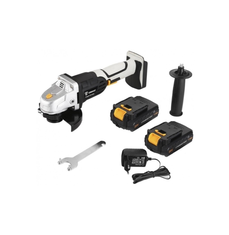 Комплект поставки УШМ, вспомогательная ручка, гаечный ключ, 2 шт. аккумулятор, зарядное устройство.