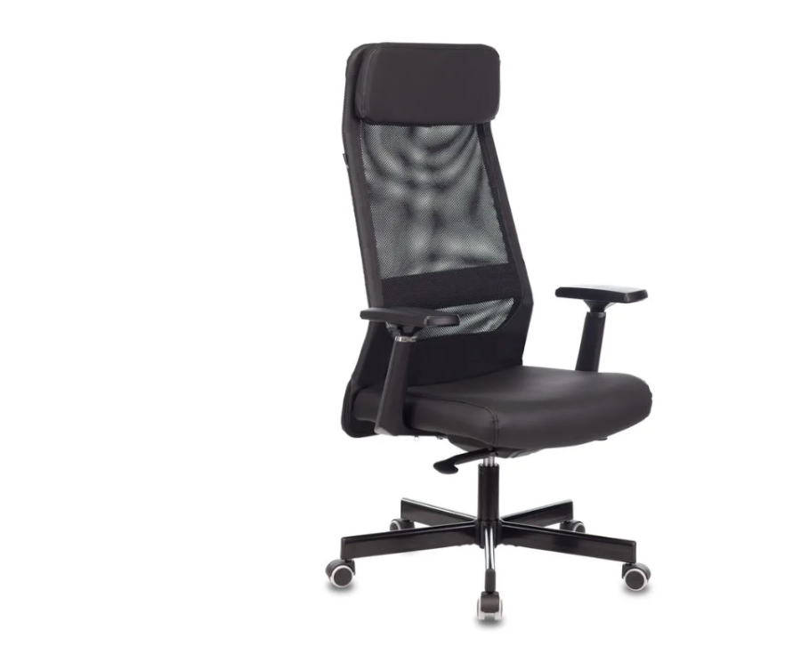 Тип установки: на колесиках; Ограничение по весу: 120 кг; Тип механизма качания: с фиксацией в нескольких положениях; Регулировки: высоты, под вес, высоты подлокотников, Конструкция: подлокотники, подголовник, эргономичная спинка (сетка), Материал обивки: эко.кожа/сетка